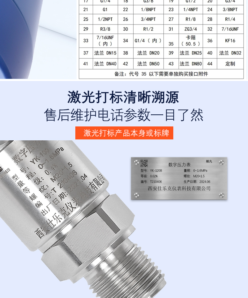 精密壓力表的精度等級:本儀表是一種以彈簧管為測量元件的高精度壓力測量儀表,屬彈簧管式壓力表分類,是高精度的標準彈簧管式壓力表。其精度等級分為 0.4級、0.25級、0.16級、0.1級。人們常將 0.4級和 0.25級儀表稱為高精度壓力表,又常將精度為 0.16級和 0.1級儀表稱為高精度精密壓力表或高精密度壓力表。